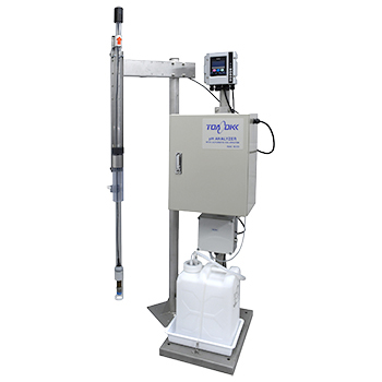 This machine is a field-installed pH meter that automates electrode cleaning and two-point calibration with JIS standard solution.